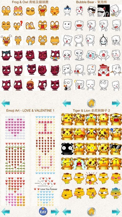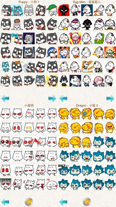 藍熊,卷紙熊,氣泡熊,黃熊,想念熊,蛋蛋超人,蛋頭人,男人,薯頭,小魔頭,牛牛,小龍,小雞,生菓妹妹,小狐狸,可愛星座,小和尚,小朋友,天氣小雞,小雞雞,小馬,小狗,小貓咪,小猴子,小倉鼠,小豬,小青蛙,貓頭鷹,小熊貓,小兔仔,可愛兔仔,小男孩及小女孩,可愛女生,老虎及獅子 等…