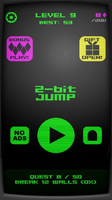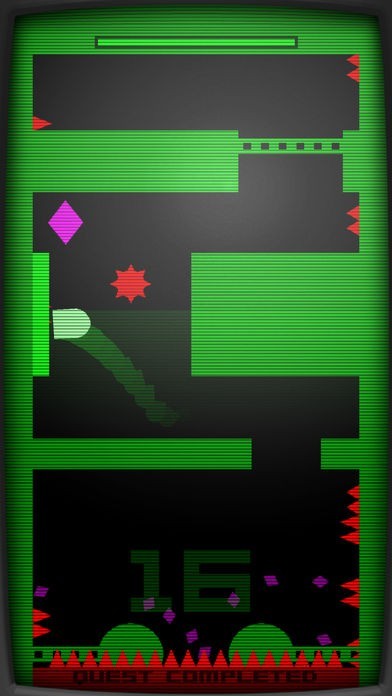 緑と赤を基調としたレトロ風味のグラフィックのゲームです。操作はタップするだけの簡単仕様ですが、タップのタイミング判定がシビアなので集中力が求められます。常に緊張感を保ってプレイできます。
