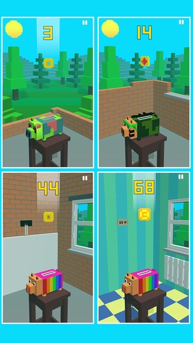 振って来るコインに合わせて貯金箱をタップ!貯まったコインでレア貯金箱をアンロック!