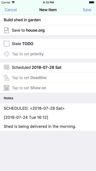 + QUICK CAPTURE: Add to your quick capture document from other apps or in beorg. The beorg share extension can quickly add text and links to your inbox.
