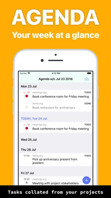 + AGENDA: Gives you a weekly agenda on your iPhone and iPad. Events from your org files are shown alongside those from iOS calendars.