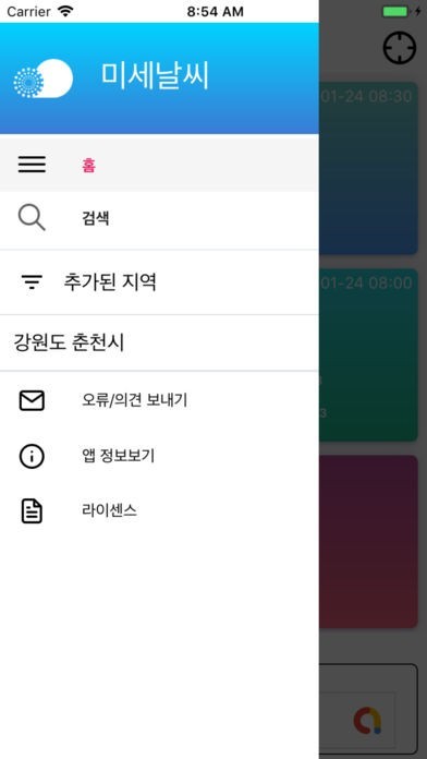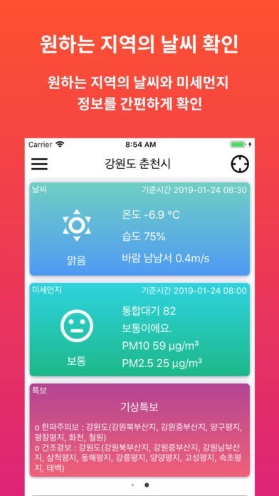 미세날씨는 기상청과 한국환경공단(에어코리아)에서 제공하는 실시간 날씨 정보와 대기오염 정보를 한 화면에서 간편하게 확인할 수 있습니다.