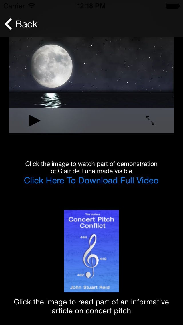 Watch a demonstration of MusicMadeVisible of Debussy's Clair de Lune in 440 Hertz tuning played by concert pianist Daniel Levy.