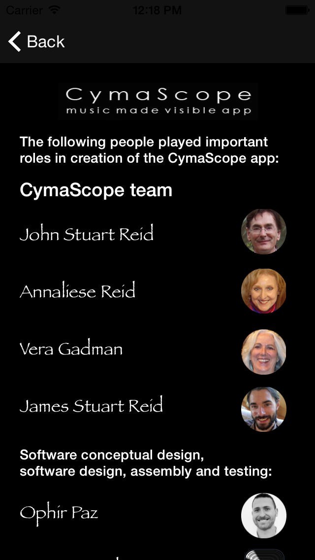 * All imagery in the app was created on the CymaScope, (a scientific instrument that makes sound visible) and then stored in digital memory for you to enjoy.