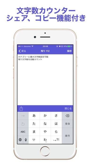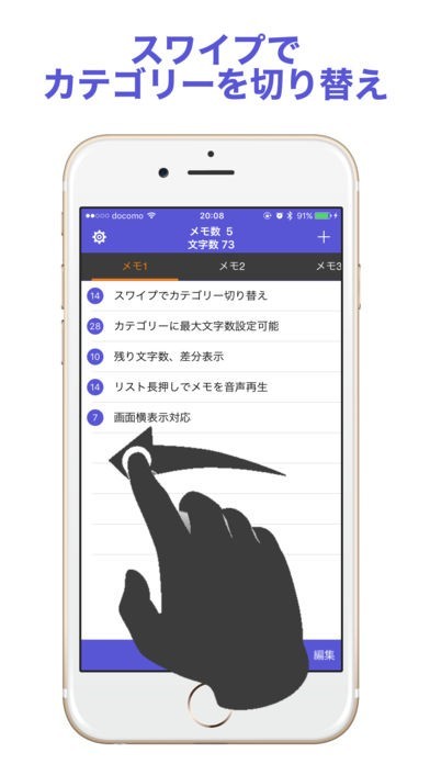 文字数カウント機能搭載でSNS用の下書きにもぴったり!カテゴリ分けでさらにメモが見やすくなる!