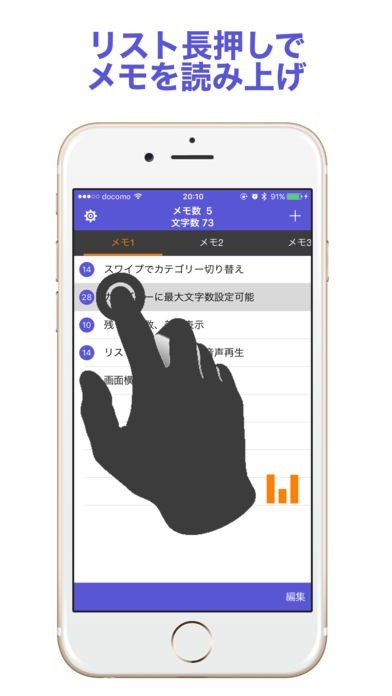 読み上げ機能搭載。リスト長押しで音声での読み上げが可能!