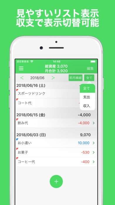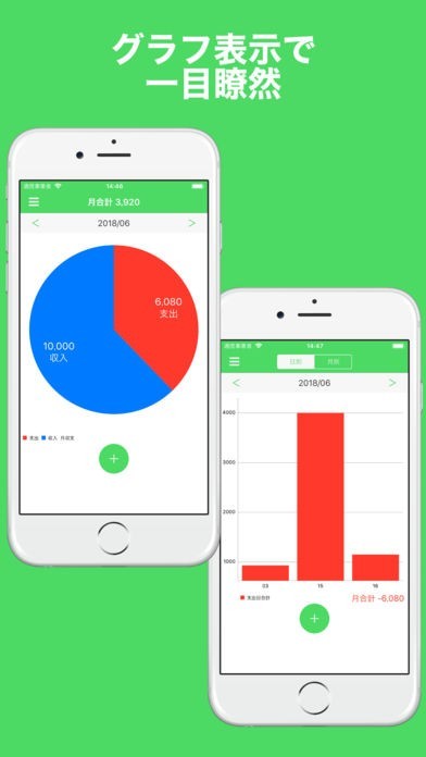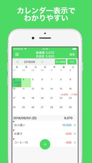 日付と金額を入力するだけで簡単にお金の管理が可能