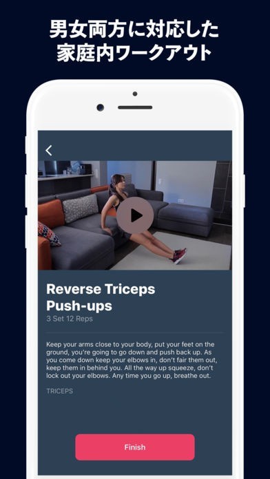 自宅にいても簡単にフィットネスを行えるのでとても嬉しいアプリです。サポート機能も充実していて無理なく続けられます。