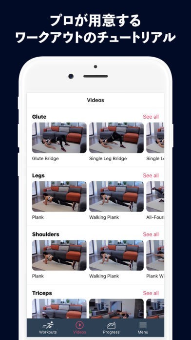フィットネスや筋トレに関するメニューが豊富でトレーニング前後の自身の変化を記録する事もできチュートリアルも充実でプロの指導を動画で視聴できるため失敗しないです。