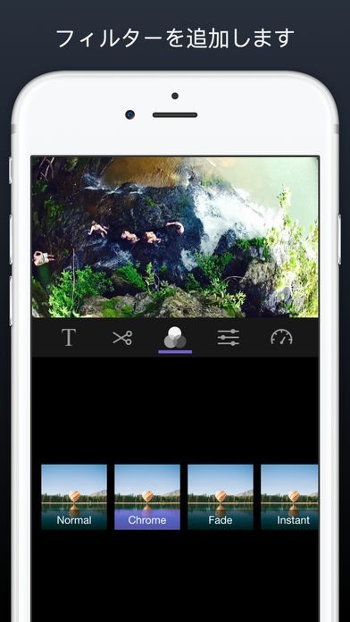 このアプリを使えば、PCや他の機器を一切使用することなく、iPhoneで撮影した写真や動画をそのまま編集することができます。また、出来上がった作品は任意の解明度でエクスポートが可能です。