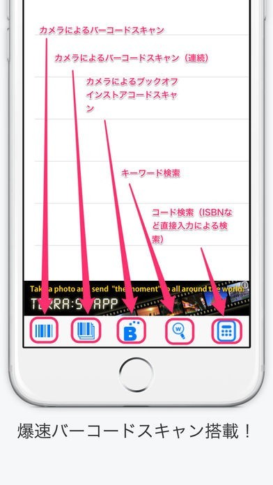 アプリを起動したら左下のアイコンを押すとバーコードスキャンが出来ます。