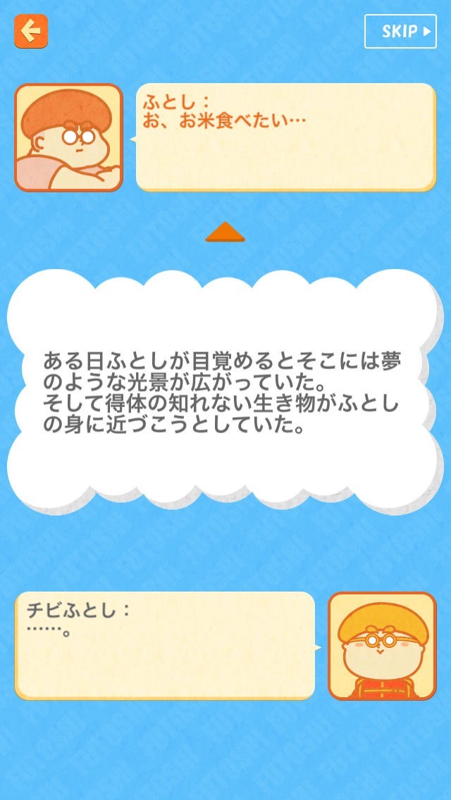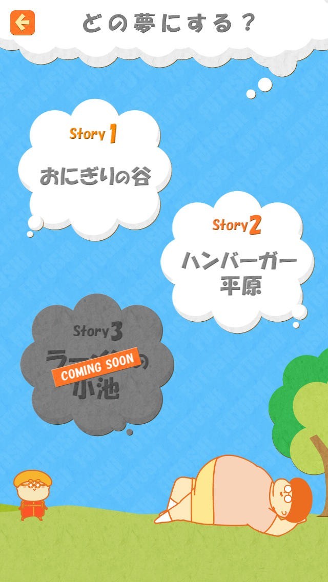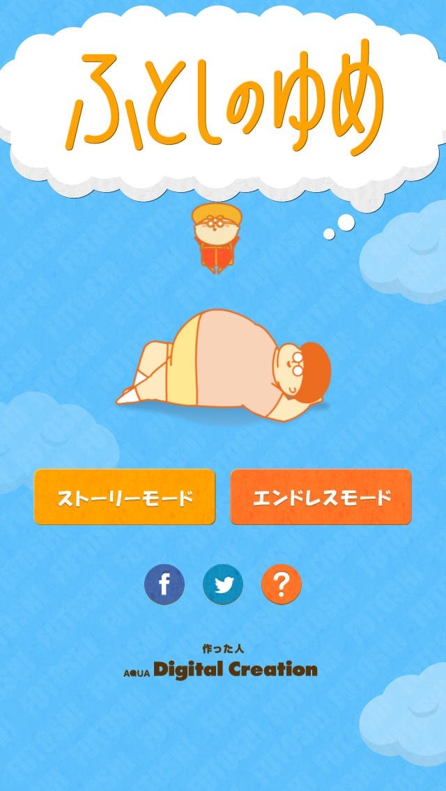 ふとしのお腹はまるでトランポリンの様!「ふとしの夢 - 夢と脂肪がいっぱい」では、プレイヤーはふとしのおなかを使って空中に飛び上がります。 操作は実際にiPhoneを左右に傾けて行います。うまく空中に散らばる食べ物をゲットしましょう。 ゲーム内にはストーリーモードとエンドレスモードの2種類のモードが用意されています。ストーリーはふとしの夢に沿って展開するのが特徴です。会話もチャット形式でサクサク進むので見ていて飽きません。