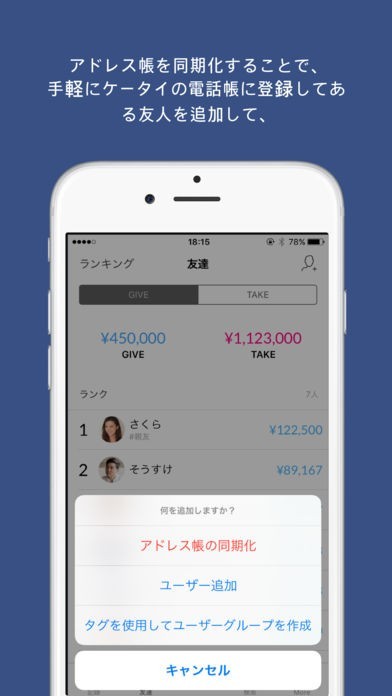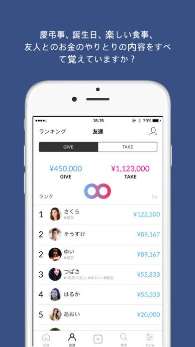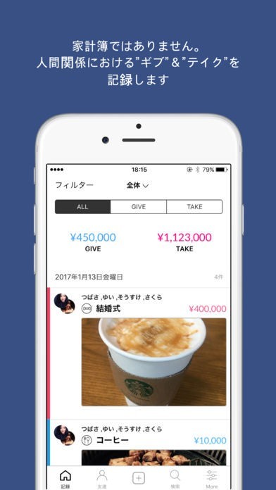 誰といくらやりとりしたかファイナンスアプリGive & Take(ギブアンドテイク)で人別に記録