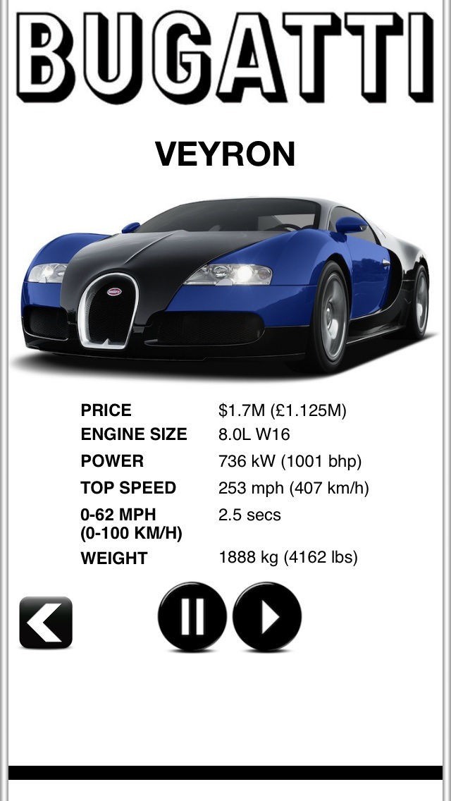スポーツカーが豊富に掲載されていて、エンジン音を再生出来るのが面白いです