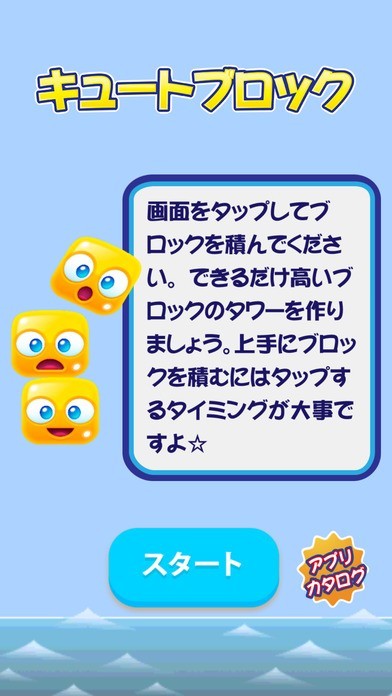 「キュートブロック」アプリは無料で遊べるタワー、ブロック積みゲームです。