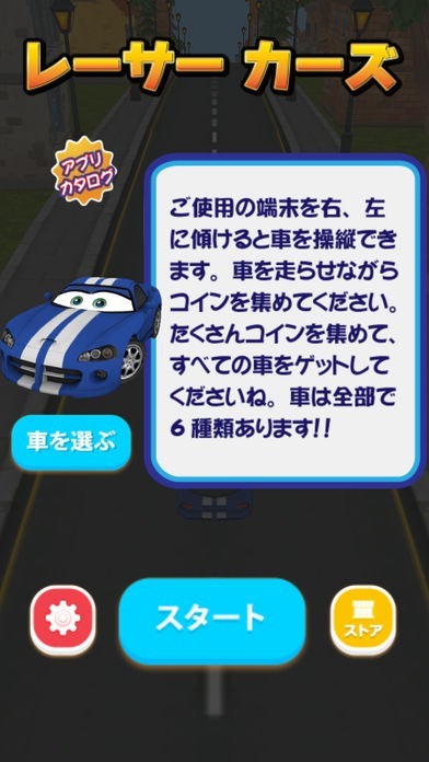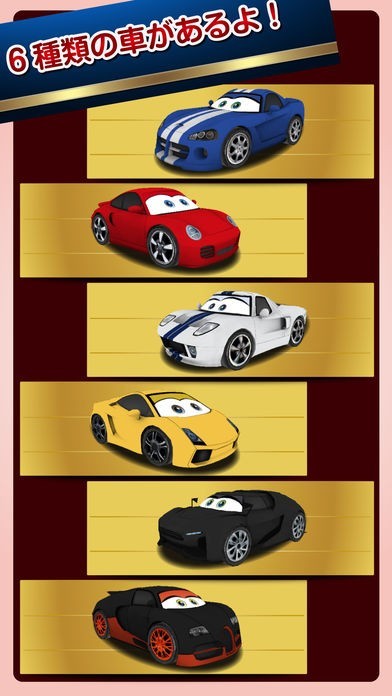 プレイヤーはかわいい6種類の車を選ぶことができる