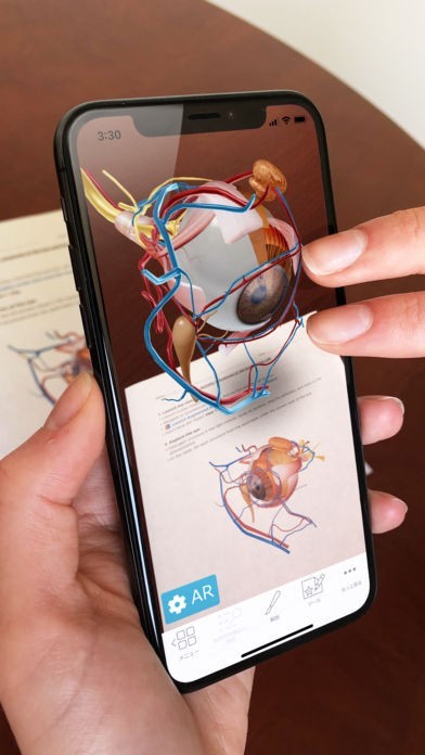 人体の構造を把握する際に解剖学の本を利用する限界として、立体的な構造を把握しにくいということがあげられます。その点、このアプリでは3Dモデルを回転させながらリアルな人体を学べます。