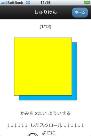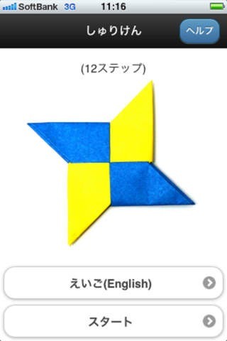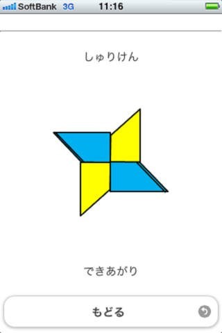 App Storeより引用忍者ごっこの必須アイテム、「手裏剣(しゅりけん)」の折り方を紹介しているアプリです。