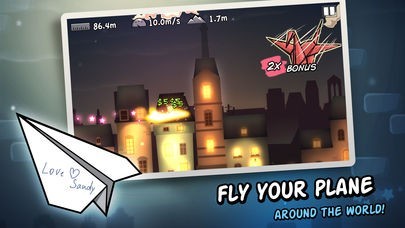 Throw your paper airplane from one country to the next as you soar through beautiful, charming environments. Steer your plane to catch shooting stars and origami cranes, or even shoot beyond the atmosphere!