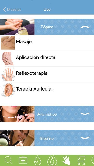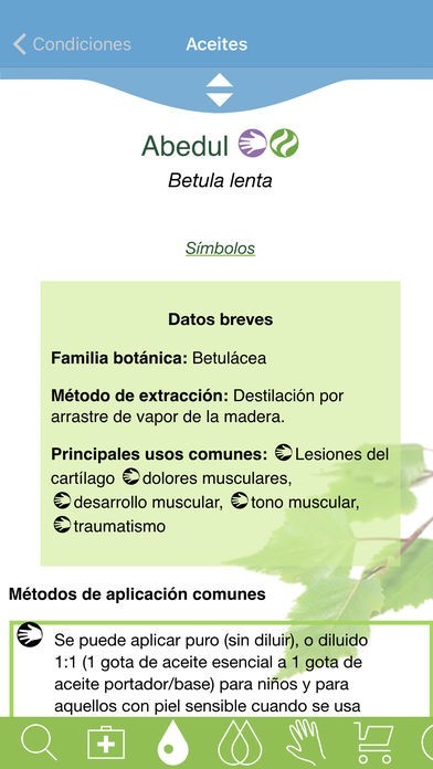Use la función de búsqueda para encontrar rápidamente y obtener información sobre un problema de salud, un aceite esencial o un método de aplicación. Use las ruletas inteligentes para investigar los diversos aceites y condiciones. O vaya a la sección de aplicación para averiguar diversas maneras de aplicar aceites esenciales.