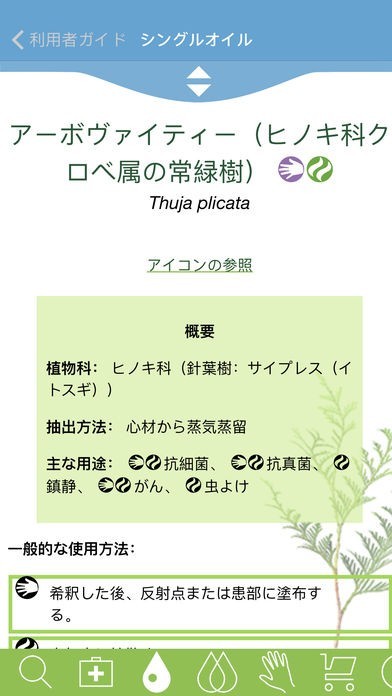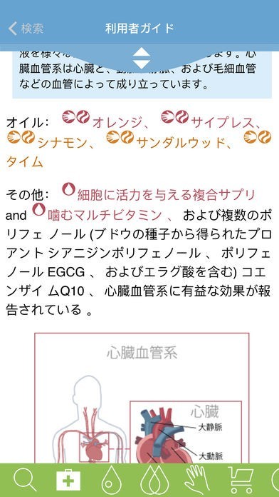 アプリには200例以上の疾患が収録されています。自分の疾患に合った精油を見つけましょう。効果の程度や使い方について、科学的な解説があるので安心して使用できます。