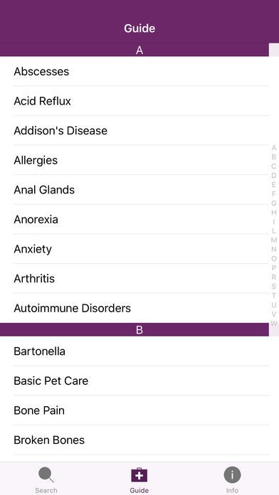 このアプリでは、ペットの病気の情報について詳細が書かれているので、ペットに異常が起きた時、動物病院へ向かう前に体調が良くない要因をある程度調べることができます。