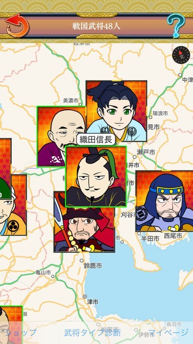 織田信長や豊臣秀吉など今の時代にも名を残す戦国武将たち、このアプリは彼らの生き様を知ってビジネスの極意を知るアプリです。まず全国地図の至るところに縁のある武将が表示されているので知りたい人をタップしてください。概要が表示され「読む」ボタンを押せば簡単なアニメーション付きの会話で話が進行し、話中に出てくる下線つきの単語はタップすると説明文が表示されます。一部エピソードは課金での購入です。また極意を知るごとにマイページでの武将ランクが上昇し、武将のフレームを使ったカメラ撮影などおまけ要素もあります。