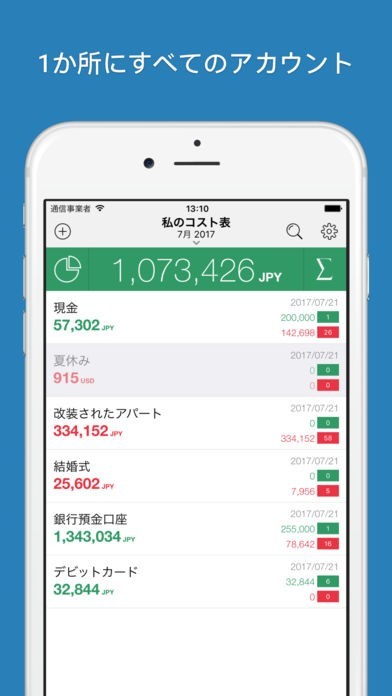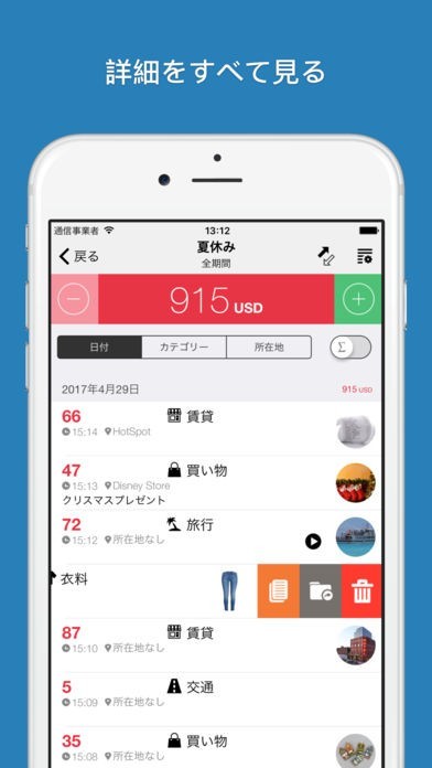 「Cost Track - 支出管理のための家計簿」はシンプルに収入と支出を管理することができるアプリになります。支出に関して金額や日付だけでなく、説明や動画などを添付することも可能となっているので何のための支出だったのかを明確にすることができるほか、ドロップボックスを利用することで家族と家計簿をシェアすることも可能です。