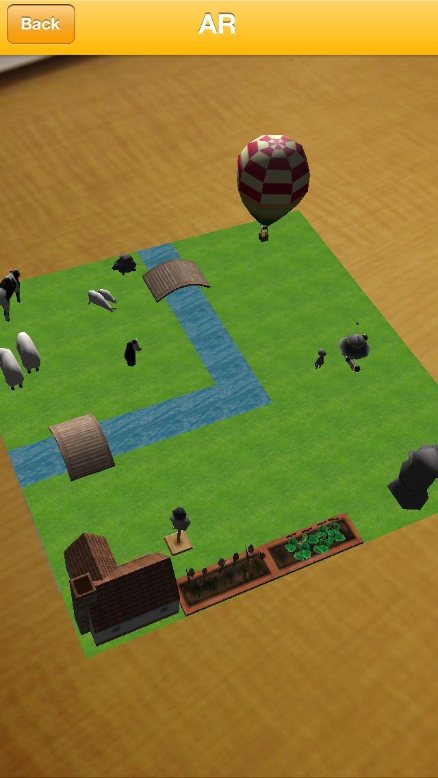 ・印刷したARマーカーに端末をかざすと、自分の作った箱庭が3DARで表示