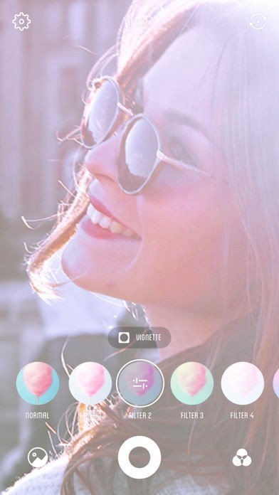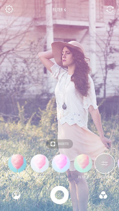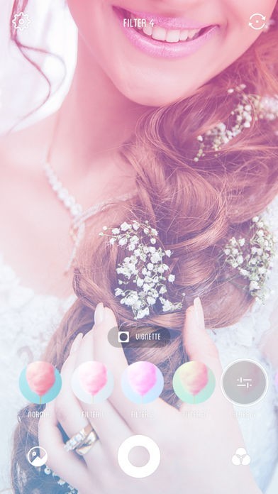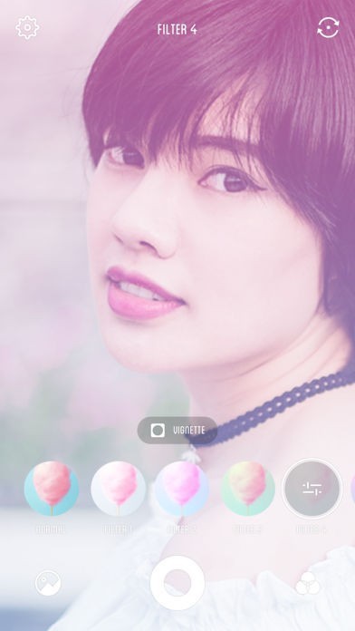 App Storeより引用コットンキャンディカメラは、甘い写真を得るためのフルスクリーンセルフカメラです。