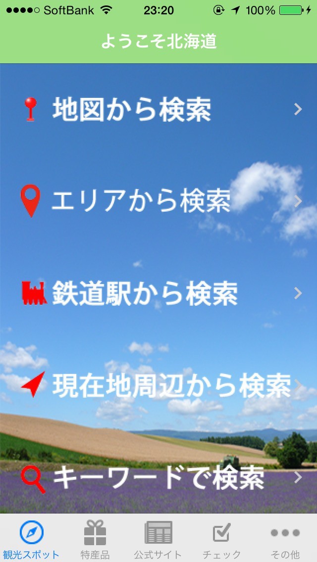 初めて北海道に行く時でも地図やキーワードからでも楽しめる情報が検索できる