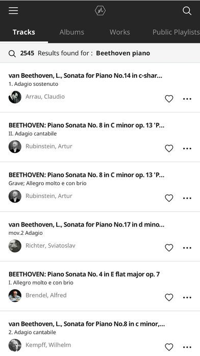 クラシック音楽に最適化された検索機能を提供します。 探したい作曲家や演奏者、または作品名を検索してみてください。 もうCDを購入したり図書館で音盤を探す必要はありません。