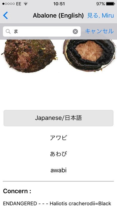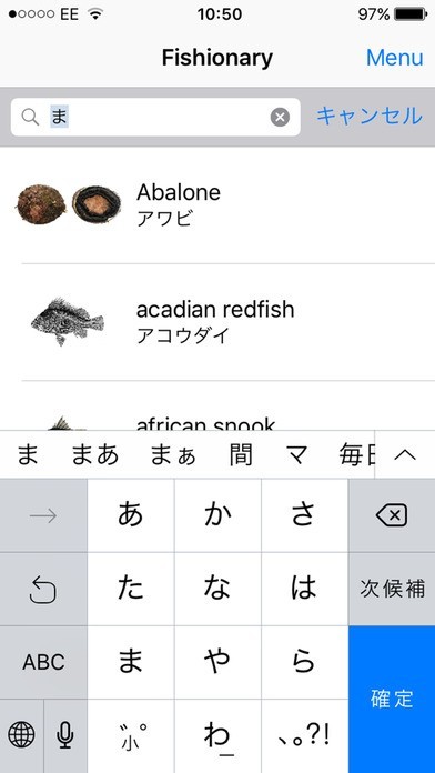 App Storeより引用魚貝類の正しい名前を見つけるのは、外国語でも自国の言語でさえも厄介なことだったりします。