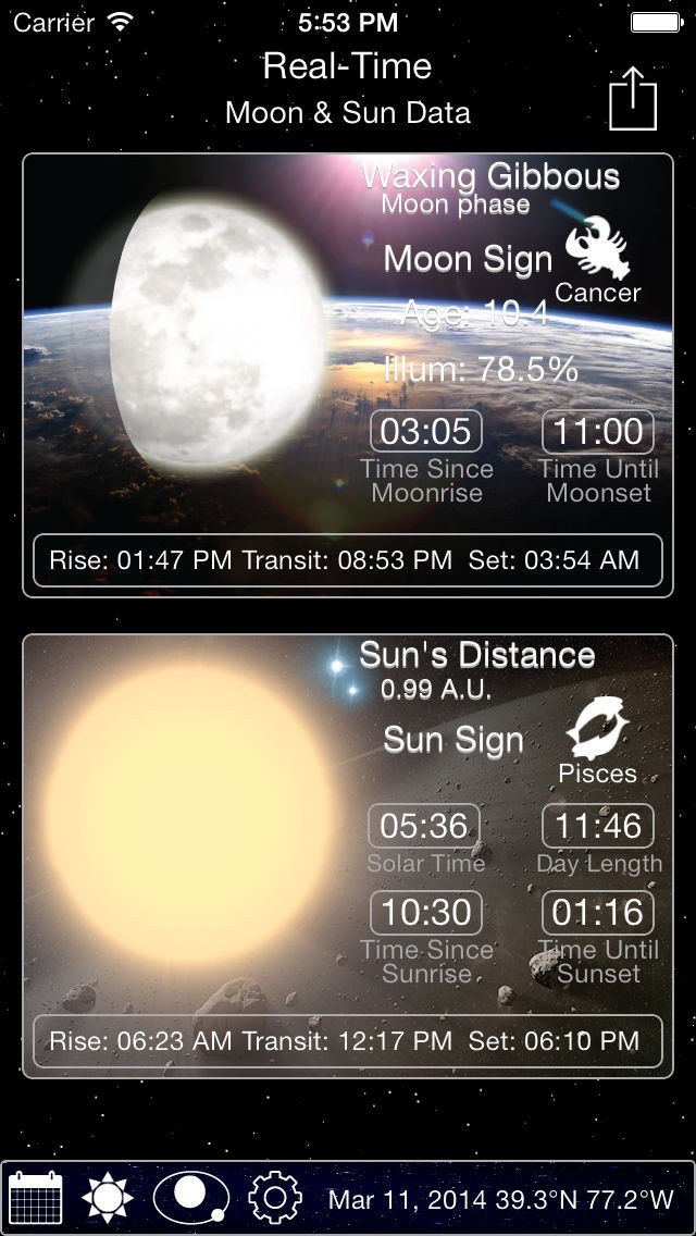 月と太陽の状態がリアルタイムで分かるアプリ