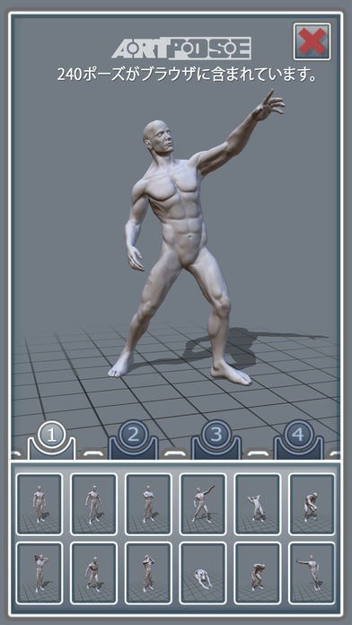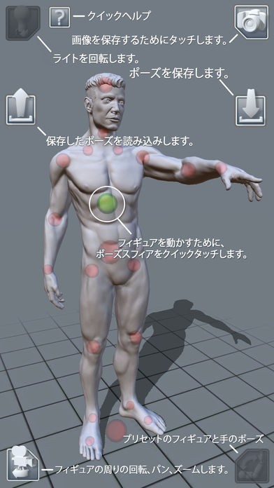App Storeより引用アートポーズは、人体の3Dポーズができる楽しく芸術的なアプリです。素早くダイナミックなポーズが数分で実現。短時間で理想的なポーズの作成、あなたの好きなアートアプリの中で使用するスクリーンショットの撮影もできます。プリセットされたスターターポーズで簡単に使用できます。アートポーズは、あなたの創作のお手伝いをするアプリです。