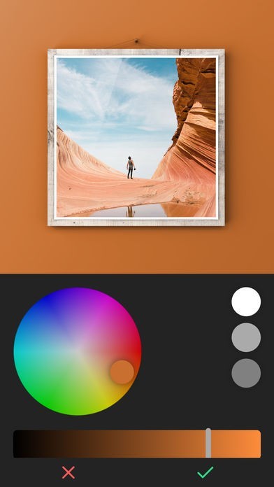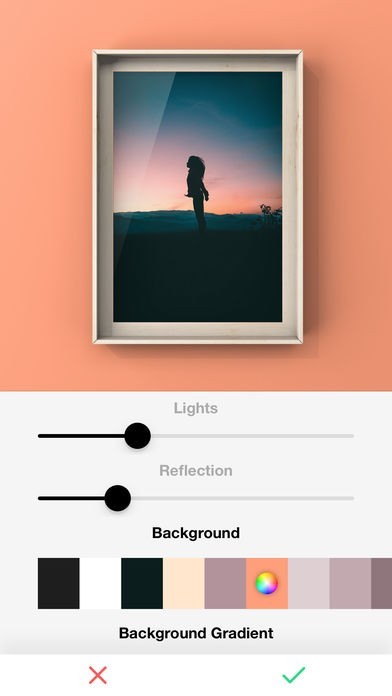 Change the shadow, lights, background, border, frame and matte colors/sizes however you want.
