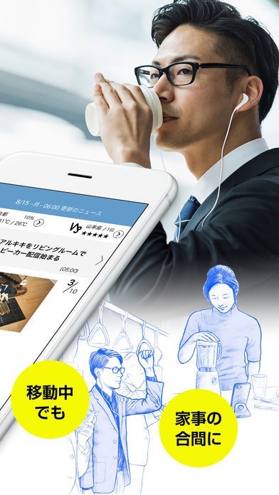 メリット:徒歩による移動が多い人は、音声によって重要なニュースを知ることが出来るので、歩いている時間を有効活用することができます。