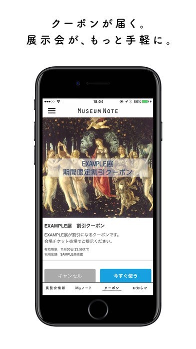 「Museum Note:展覧会の情報もクーポンも思い出もひとつのアプリに」スペック・仕様