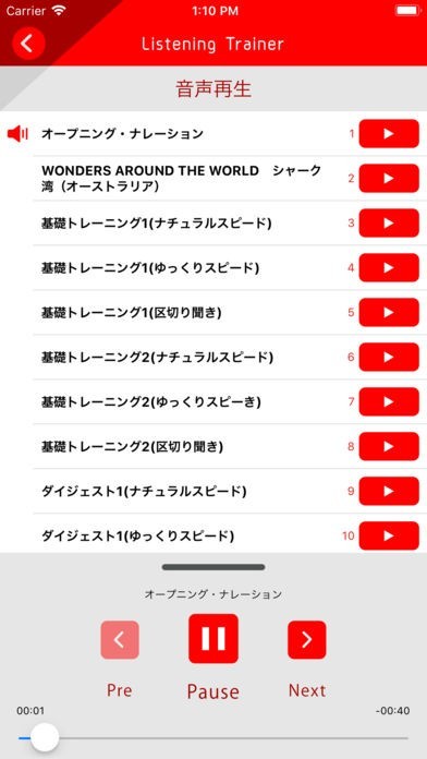 やや遅いスピードで音声を再生することもできます。英語を聞き取ることが苦手な人でも基本的な部分から少しずつリスニング力をつけることができるので、とても使い勝手が良いです。
