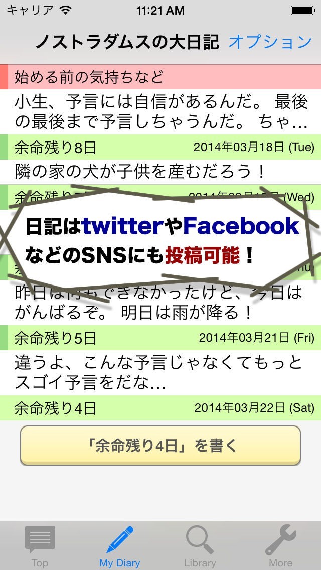日記はtwitterやFacebookやLINEにも投稿できますので、投稿ネタに困っている方にもオススメです。