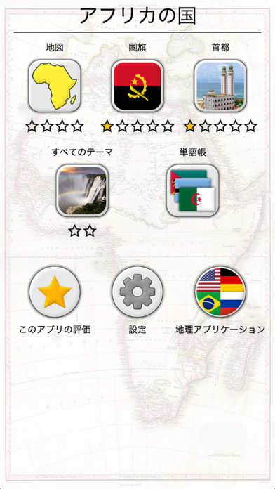 App Storeより引用アフリカの54の独立国すべてを学ぶ。地理学に関するクイズ。 エジプトからケニアへ。