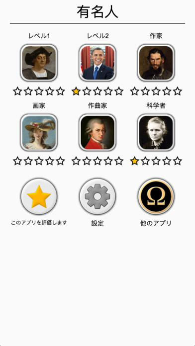App Storeより引用王と王妃、政治家やミュージシャン、俳優や映画監督:このアプリでは世界史から450人の最も有名な人物があります。