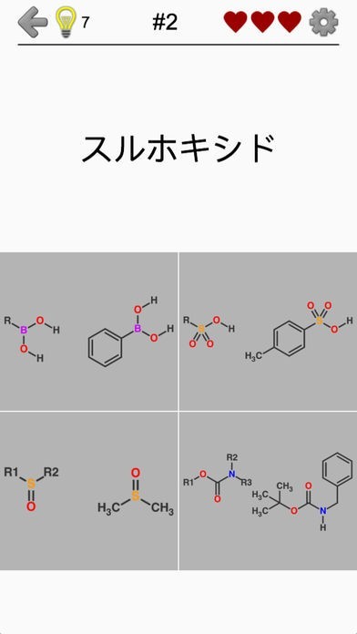 有機化学と有機化合物の名前がクイズで楽しく学べるので勉強しやすいです。