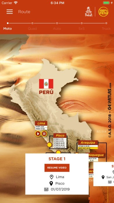 This year, the Dakar will take the competitors to Peru. Discover the finest details of the route, the classifications, rider/driver profiles, latest videos and photos as well as all the information about the race on the official 2019 Dakar application. The app includes a live tracking module allowing you to experience the thrills of the race in real-time, as well as a customisable notifications system.