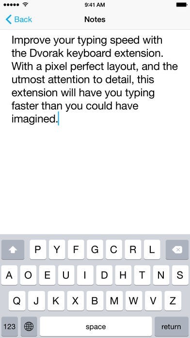 Dvorak配列のソフトウェアキーボードが使えるようになるアプリです。現在キーボードの主流はQwerty配列ですが、Dvorak配列ならより効率的に英語を入力していくことができるでしょう。
