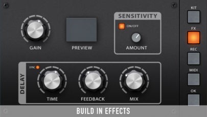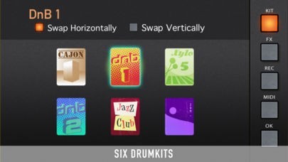 このアプリケーションには、様々な音楽スタイルにあわせた6つのドラムキットが内蔵されています。