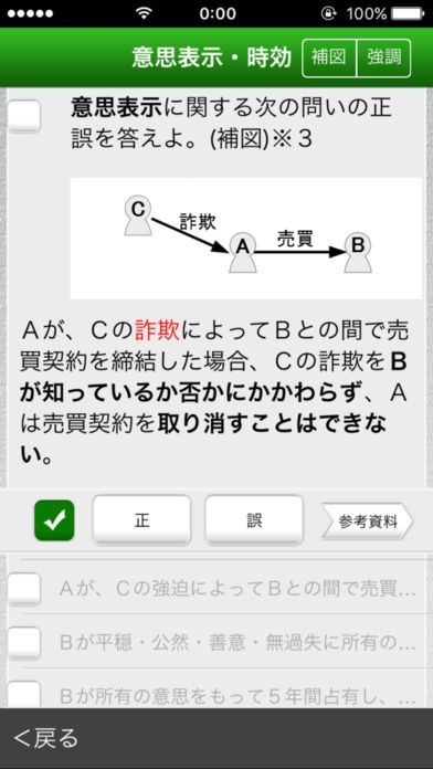 問題解答後の解説画面では、正答や誤答の理由だけではなく、それらの条項についてより深く理解するための参考資料や図による解説も同時にチェック可能で、内容をしっかり把握できます。