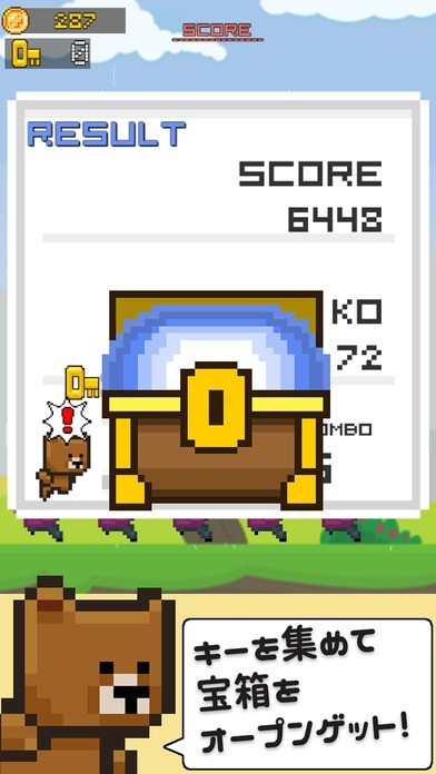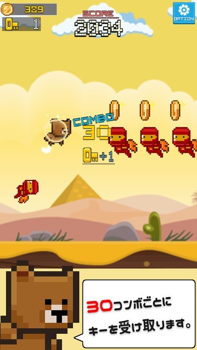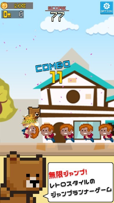 画面タップでクマがジャンプ。タイミングよく敵にベアジャンプを当てればコンボが稼げる!