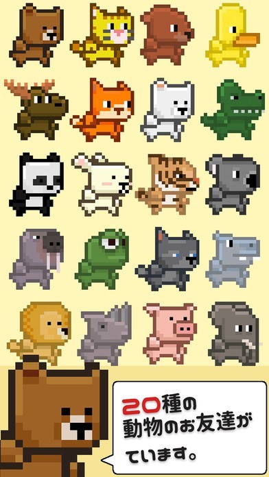 レトロ調のグラフィックでクマが活躍。次々現れる敵をジャンプで倒し、ステージクリアを目指そう!