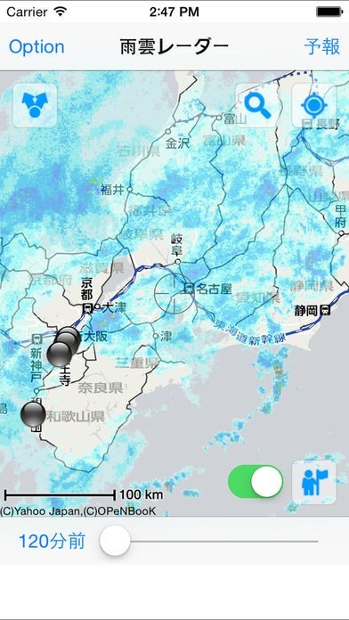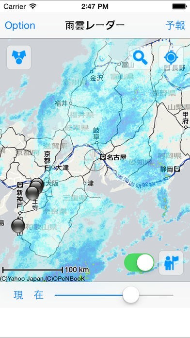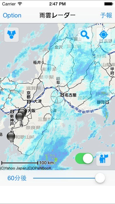 四次元雨雲レーダーのスクリーンショット